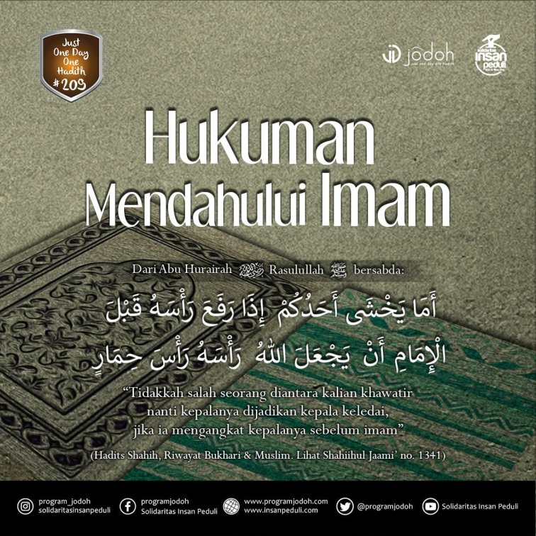 “tidakah takut diantara kalian mengangkat kepalanya sebelum imam, bahwa Allah akan menjadikan kepalanya kepala keledai”